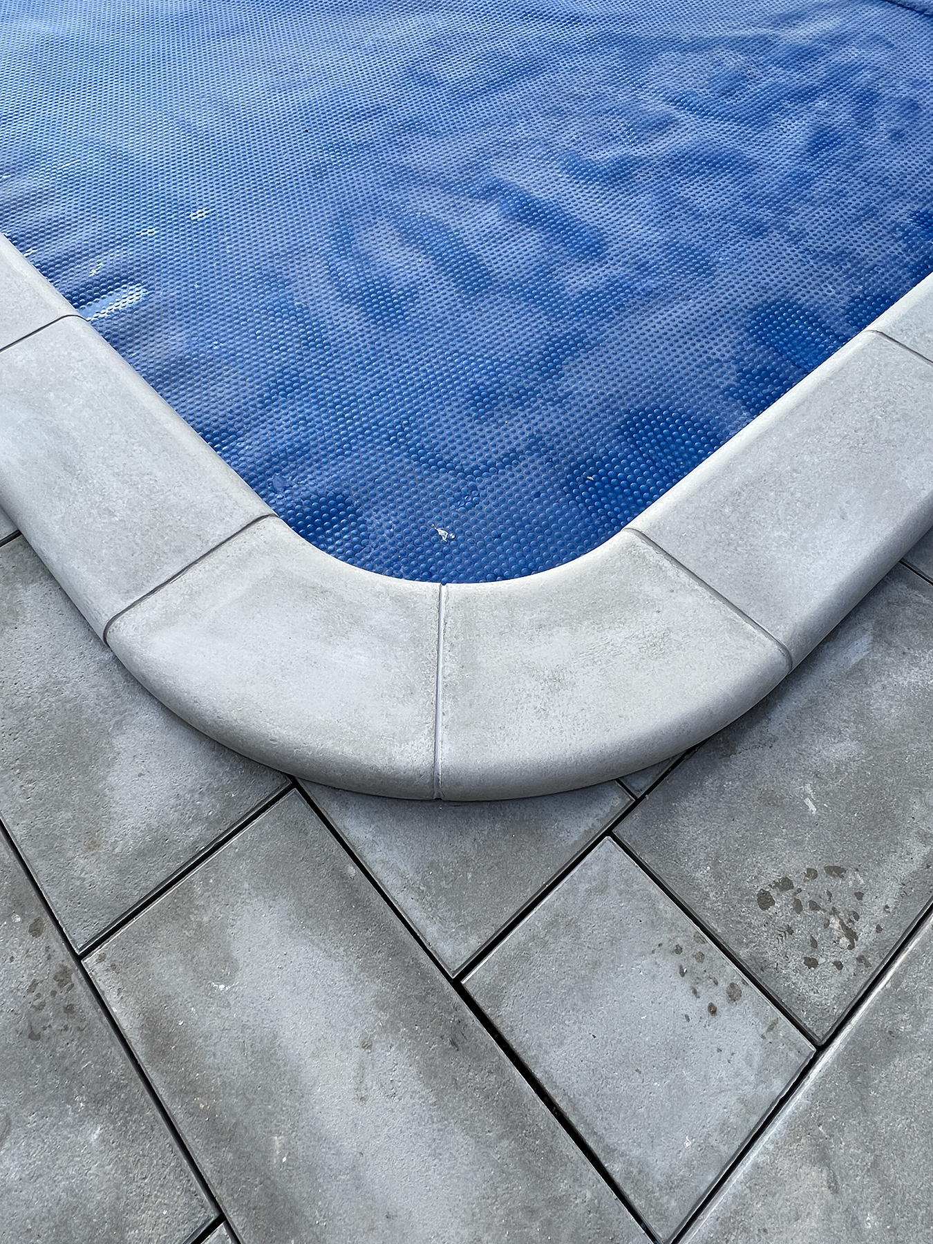 A medenceszegélykő nemcsak esztétikus, de elfedi a medencetest, a burkolat és a medence körüli felület találkozását
